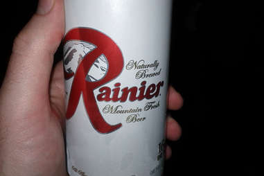 Most marketable feature: LABEL, BEING FROM THE PAC-NORTHWEST. Its iconic white can, with the double-gold ring and a crimson "R," looks crisper than most beers taste. Plus, Rainier hails from Seattle, which is synonymous with flannel shirts, dark coffee, and musical snootiness. Those are good places to start.